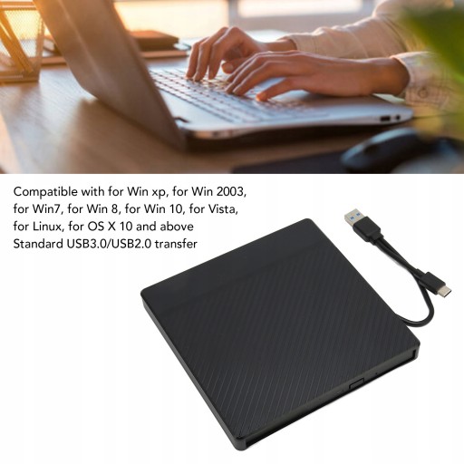 2. Kompatybilny: zewnętrzny napęd DVD USB3.0 kompatybilny z Win xp, Win 2003, Win7, Win 8, Win 10, Vista, Linux, OS X 10 i nowszy