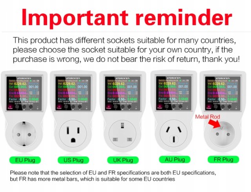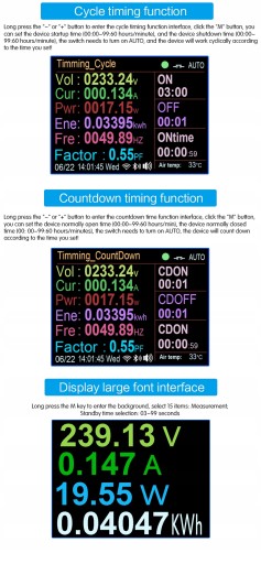 Moc: Max 3680W Zakres pomiaru energii: 0 ~ 1999kWh