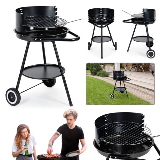 - Rączka i koła umożliwiające swobodne przestawianie grilla