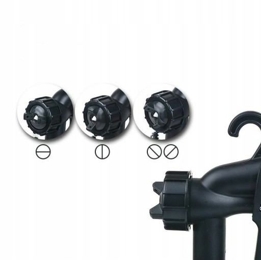 Nasze urządzenie posiada specjalną obrotową końcówkę, dzięki której dostosujesz szerokość i kształt strumienia farby - możesz wybrać pomiędzy okrągłym, owalnym w pionie lub owalnym w poziomie. Dzięki temu Ty decydujesz czy malujesz duży obszar na raz czy skupiasz się na elementach malując precyzyjnie.