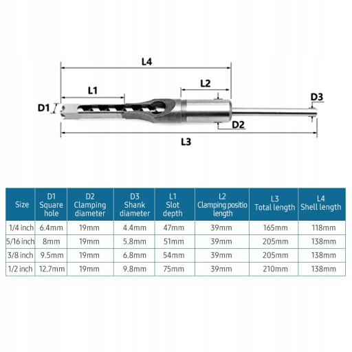 Wysokiej jakości materiał: wykonany ze stali węglowej o wysokiej twardości, wiertło z kwadratowym otworem jest solidne, trwałe.