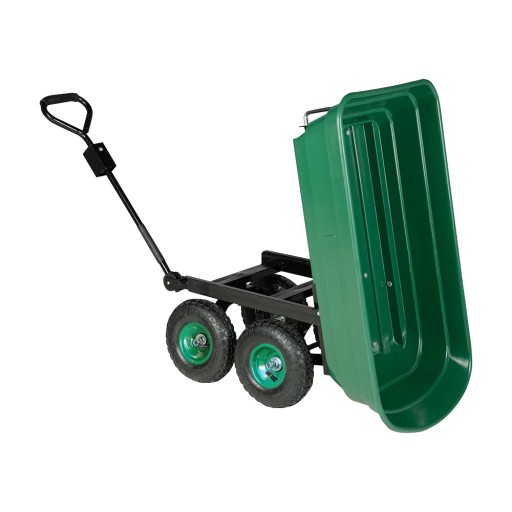Wózek ogrodowy marki Frontier z funkcja przechylania, sprawdzi się w każdym ogrodzie, gospodarstwie lub na placu budowy. Wytrzymuje obciążenie do 300 kg lub 75 l odpadów ogrodowych, ziemi, piasku lub wody. Konstrukcja wózka składa się z trwałej stalowej ramy i skrzyni wykonanej z odpornego na uderzenia tworzywa polipropylenowego. Sprawdzi się w każdym terenie dzięki dużym kółkom pneumatycznym. Otwarta skrzynia umożliwia szybki załadunek, a przechylanie wózka daje możliwość łatwego i bezpiecznego rozładunku.