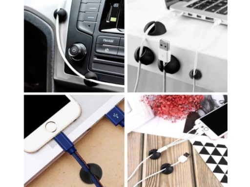 Wielofunkcyjny uchwyt doskonale sprawdza się w uporządkowaniu biegu kabli i przewodów w domu, biurze czy samochodzie.
