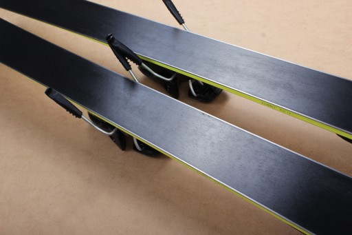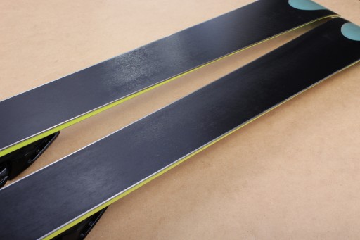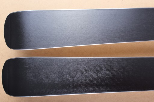 Narty w bardzo dobrym stanie wizualnym. Kilka drobnych zadrapań wzdłuż boków nart, narty lekko przybrudzone. Brak osłon aluminiowych na dziobach nart, nie ma to wpływu na użytkowania, ponieważ dużo ilość nart na rynku nie ma montowanych tego typu osłon.