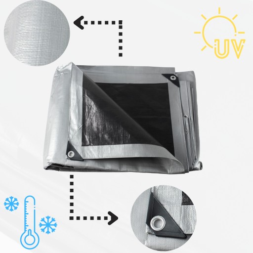 ✅ Wodoodporny materiał sprawia, że podczas deszczu czy śniegu nie przecieknie on na przedmioty, które zostały okryte plandeką.