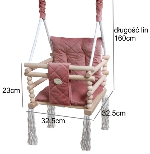 ✅Huśtawka wykonana z precyzją i dbałością o każdy szczegół. Wykonana z wytrzymałych, łatwych w czyszczeniu materiałów, zawieszona na linach i bukowych drążkach. Siedzisko wyścielane mięciutkim wygodnym materacykiem o grubości 4cm.