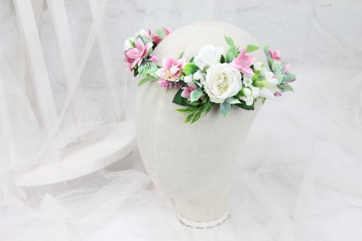 Wianek posiada możliwość regulacji wielkości obwodu dzięki satynowym tasiemką z tyłu, pasuje zatem zawsze idealnie.
