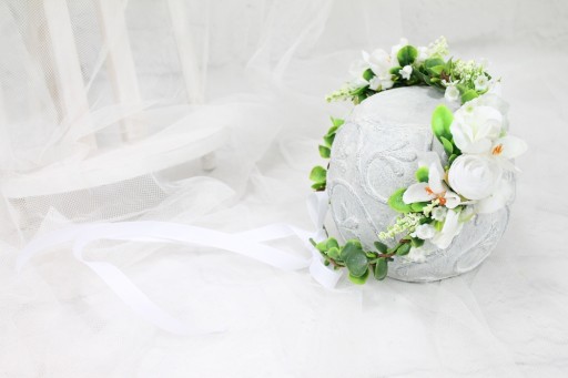 Wianek posiada możliwość regulacji wielkości obwodu dzięki satynowym tasiemką z tyłu, pasuje zatem zawsze idealnie.