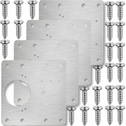 Metalowe płytki i śrubki w zestawie są odporne na korozję, co oznacza, że mogą być używane zarówno wewnątrz, jak i na zewnątrz, niezależnie od warunków pogodowych. Deszcz, śnieg, wilgoć czy ekstremalne temperatury nie wpłyną na ich wytrzymałość ani funkcjonalność.