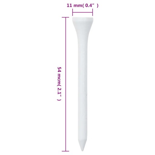 - Standardowy rozmiar: kołki do piłek golfowych mają 54 mm wysokości i 11 mm średnicy, a zatem są zgodne ze standardowymi rozmiarami i pasują do wszystkich kijów golfowych.