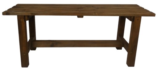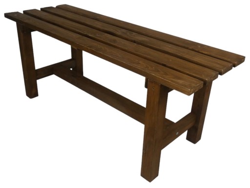 Drewniana ławka bez oparcia o wymiarach siedziska 100x33cm oraz wysokości 40cm.