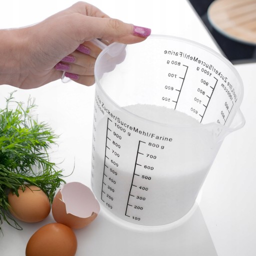 MIARKA KUCHENNA kubek z podziałką dzbanek miara do cukru mąki 1l z rączką