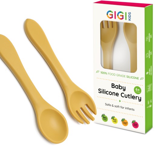 Silkonowe sztućce, łyżeczka i widelec dla dzieci do nauki samodzielnego jedzenia