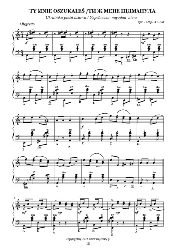 Dziękuję kompozytorowi A. Siczowi za okazaną współpracę oraz możliwość wy-dania jego kompozycji. Mam nadzieję, że publikacja zagości na waszych pulpitach w placówkach artystycznych, szkołach muzycznych i prywatnych domostwach a literatura za wschodniej granicy, tj. z Ukrainy, przysłuży się Wam do rozwoju w grze na tym pięknym instrumencie, jakim jest akordeon.