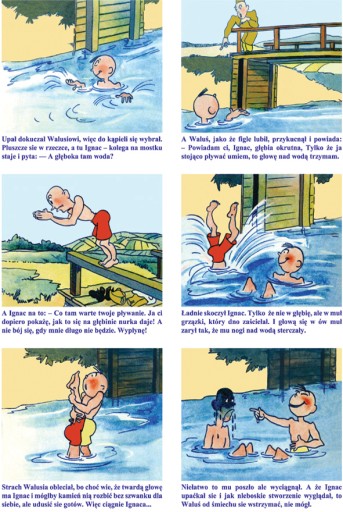 Co tydzień młodzi Polacy mogli śledzić przygody komiksowych bohaterów z tygodnika MOJA GAZETKA. W tygodniku tym równolegle ukazywały się trzy różne serie komiksowe wyłącznie polskich autorów.To właśnie w tygodniku MOJA GAZETKA pojawiły się w 1933 roku pierwsze kolorowe komiksy wydane w prasie polskiej.W książce na każdej z 80 stron znajdują się piękne grafiki w pełnym kolorze.Każda strona składa się z sześciu scenek (oddzielnych rysunków). Do każdej scenki przypisany jest piękny, dynamiczny tekst.