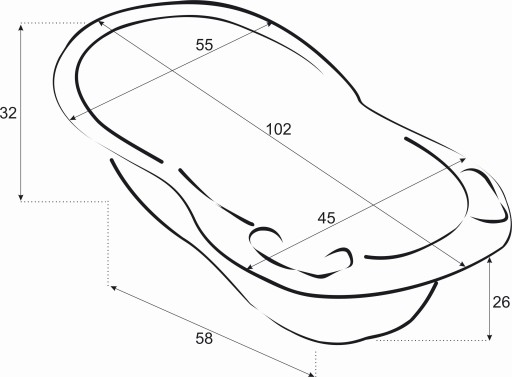 • Podstawa pod wannę 102 cm zapewnia wygodę w trakcie kąpania dziecka oraz nie obciąża kręgosłupa.