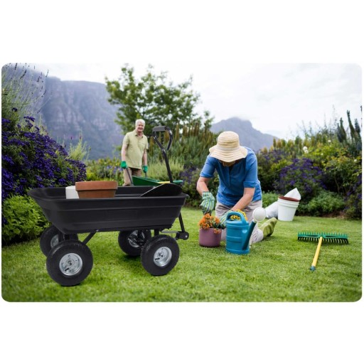Pomimo dużej pojemności - aż 75 litrów - ten wózek pozostaje lekki i łatwy do prowadzenia. Wygodna rączka ułatwia manewrowanie nawet przy pełnym obciążeniu, a funkcja wywrotki umożliwia szybkie opróżnienie zawartości bez konieczności jej wysypywania. To idealne rozwiązanie dla osób posiadających duże ogródki lub pracujących przy większych projektach ogrodowych.