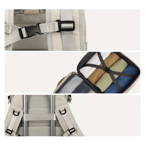 ✈️ ORGANIZACJA I SEGREGACJA: Plecak posiada wiele kieszeni, przegródek oraz paski kompresyjne, które ułatwiają organizację i segregację rzeczy.