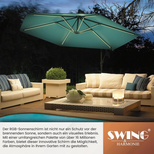 Swing & Harmonie luksusowy parasol przeciwsłoneczny LED z oświetleniem RGB, w zestawie pilot zdalnego sterowania, sterowanie za pomocą aplikacji,