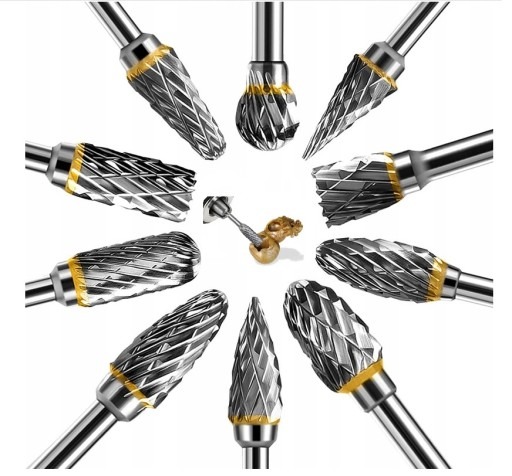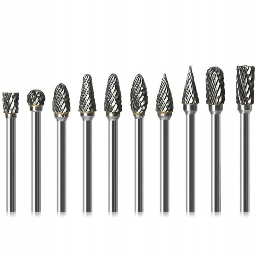 WIERTŁA FREZ ZESTAW DO RZEŹBIENIA DREWNA METALU OBROTOWE TRZPIENIOWE PILNIK WĘGLIK SPIEKANY 10 SZTUK