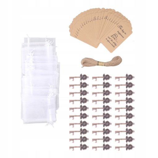 30 SZTUK Różany kluczowy otwieracz do butelek z kartami identyfikacyjnymi Stop cynku DIY Zawieszka w stylu vintage Dekoracja na przyjęcie ślubne