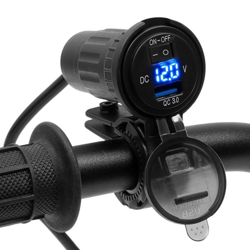 ✅ zestaw zawierający montowany do kierownicy adapter do gniazd motocyklowych i gniazdo motocyklowe MUS13.Port USB QC3.0 pozwala w szybki i bezpieczny sposób naładować dowolne urządzenie obsługujące standard Quick Charge. Gniazdo posiada woltomierz pokazujący napięcie prądu na wejściu do gniazda natomiast po wyłączeniu zapłonu napięcie w akumulatorze (w zależności od sposobu podłączenia do instalacji). Dodatkowo Gniazdo posiada wyłącznik pozwalający na odcięcie zasilania. Podświetlenie w kolorze niebieskim ułatwia korzystanie z gniazda w ciemności.