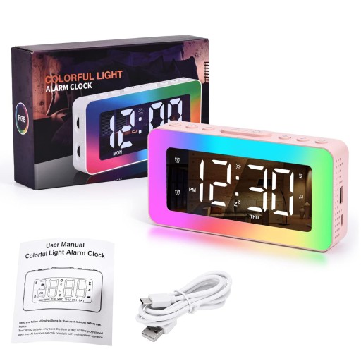 - Przekraczający wszelkie oczekiwania wobec zegara stołowego - elektroniczny budzik ma 8 dynamicznych, kolorowych trybów światła zmieniających kolor, które zapewniają wesołą atmosferę.