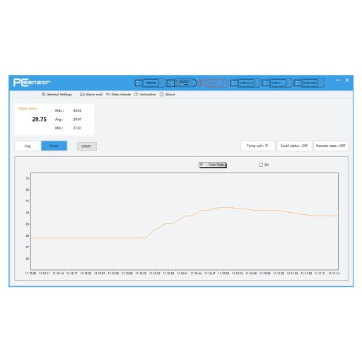 1. Wyświetlacz pomiaru temperatury: Temperatura jest mierzona przez zewnętrzną sondę i wyświetlana w interfejsie oprogramowania. Sonda zewnętrzna ma funkcję wodoodporności.