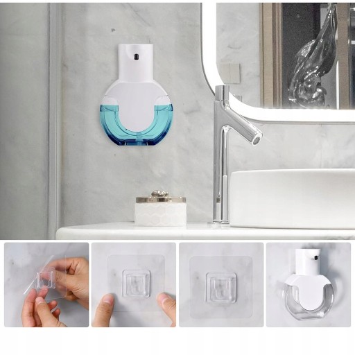 - Istnieją 2 metody instalacji. Dozownik mydła możesz automatycznie umieścić bezpośrednio na stole lub przymocować go do ściany, aby zwolnić miejsce na blacie.