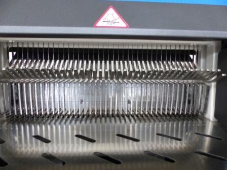 - Gruby grzebień ze stali nierdzewnej, przytrzymujący chleb w trakcie krojenia