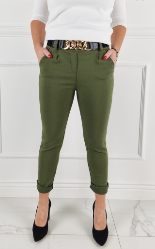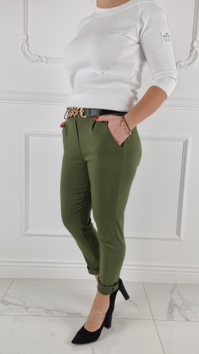 Elastyczne spodnie cygaretki, posiadają wysoki stan. Świetne połączeniu ze szpilkami, dzięki swojej uniwersalności, pasują niemal do każdej stylizacji. Elastyczny materiał podkreśla kobiecą sylwetkę. Spodnie są dopasowane, rozciągają się. Podkreśl swoje kobiece kształty! Spraw, by Twój codzienny Look był niepowtarzalny.