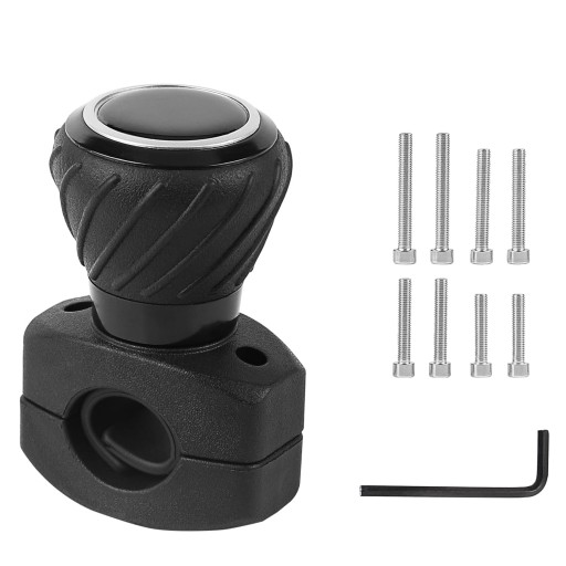 pokrętło z uchwytem obrotowym z 4 różnymi długościami śrub i kluczem imbusowym ułatwiającym montaż. Najlepszym miejscem do montażu jest górna część kierownicy, po stronie ramienia kierowcy. W zależności od osobistych preferencji, o godzinie 10:00 lub 14:00. Nadaje się do kierownic o szerokości < 3 cm, średnicy < 4,4 cm i obwodzie 8-11 cm.