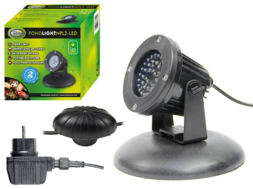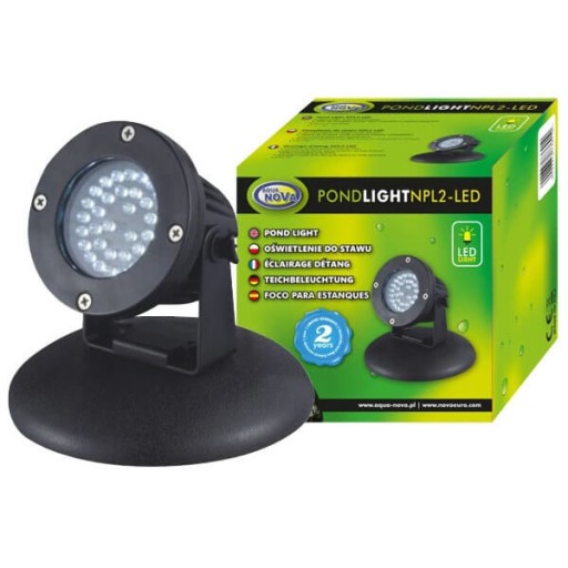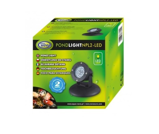 Aqua Nova NPL2-LED to wodoodporny reflektor LED o dużej mocy świecenia 2,2 W. Zestaw oświetleniowy wyposażony w czujnik zmierzchu jest idealny do podświetlenia oczka wodnego, fontanny lub wodospadu przy jednoczesnej dbałości o bezpieczeństwo dzięki zasilaniu bezpiecznym napięciem 12 V.