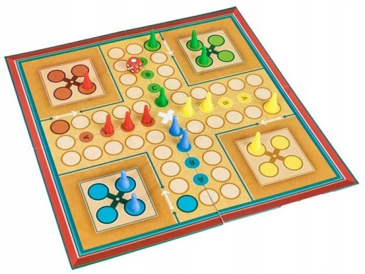 Zawiera dwustronną planszę : dla 2-4 graczy, lub dla 2-6 graczy. Celem gry jest przeprowadzenie wszystkich czterech pionków z bazy do domu.