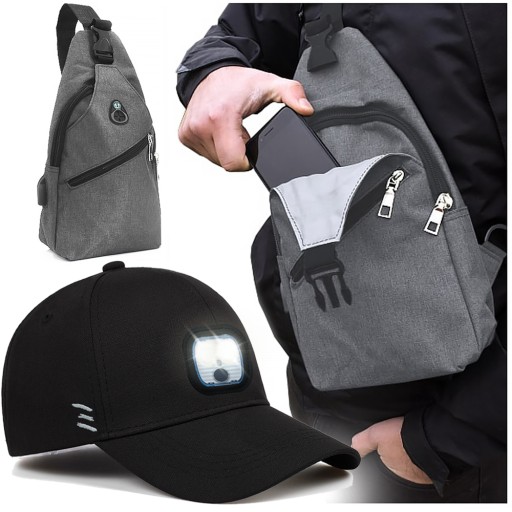 МАЛЕНЬКИЙ РЮКЗАК НА ОДНО ПЛЕЧО С USB-ПОРТОМ + БИЗНЕС-ШАПКА СО СВЕТОДИОДНОЙ ПОДСВЕТКОЙ
