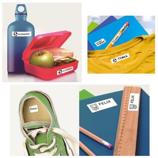 Zestawem oznaczysz nie tylko ubrania ale również przybory szkolne, pojemniki na jedzenie czy buty.
