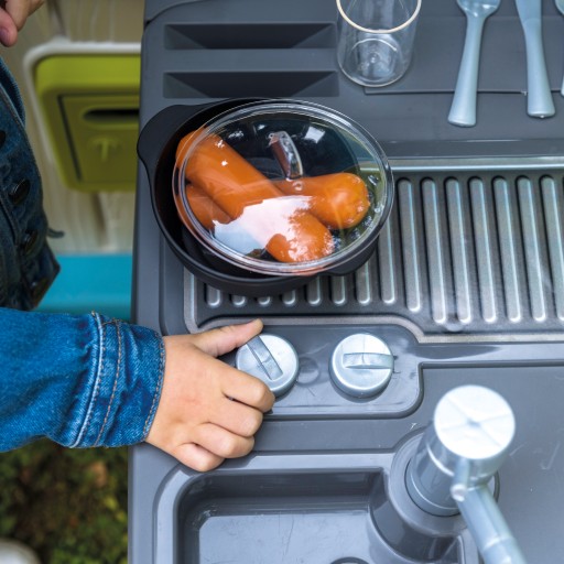 Kuchnia letnia od firmy SMOBY to idealne uzupełnienie domku Neo Jura, który dzięki niej staje się bardziej realistyczny! Dzieci mogą dostosować swój domek do własnych upodobań, wyposażając go w kuchnię letnią. Sprawi to, że domek będzie przypominał prawdziwy dom. Dzieci mogą cieszyć się zabawą w gotowanie smacznych potraw na “grillu” i korzystać z 17 akcesoriów: kiełbasek, szklanek, talerzy, sztućców, Wszystko, co potrzebne do miłego spędzenia czasu w ogrodzie! Kuchnia letnia, podobnie jak domek Neo Jura, jest odporna na działanie promieni UV, dzięki czemu zachowuje swoją wytrzymałość i żywe kolory przez długi czas. Drzwi są przeznaczone dla dzieci od 2 roku życia. Produkt wykonano we Francji.