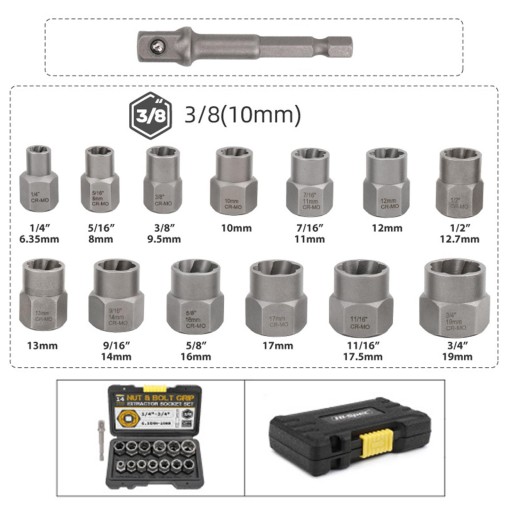 Wszechstronne narzędzie: ten zestaw nasadek nasadowych z łatwością usuwa pozbawione śrub, uszkodzone nakrętki i zaokrąglone śruby. Spełnia wszystkie twoje potrzeby związane z naprawą samochodów, dekoracji wnętrz lub produkcji rzemieślniczej z dużą wygodą i wydajnością.