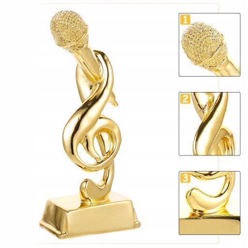 Trofeum z nutą mikrofonu, unikalny kształt. Trofeum jest dobrą nagrodą dla zwycięzcy i symbolizuje honor.