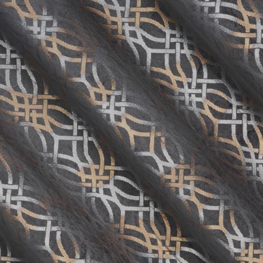 Miękka, puszysta, grubsza tkanina o gęstym splocie - zasłona welwetowa z szampańskim i srebrnym nadrukiem