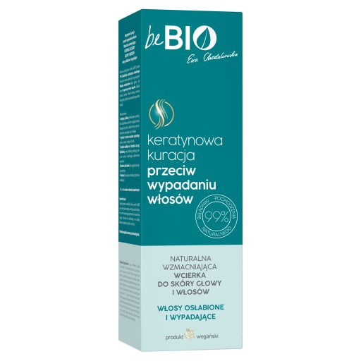 Naturalna wzmacniająca wcierka do skóry głowy i włosów beBIO zawiera 99% składników pochodzenia naturalnego. Idealna do włosów osłabionych i wypadających. Pobudza mikrokrążenie skóry głowy i tym samym wspomaga wzrost włosów. Głęboko nawilża, odżywia cebulki włosów, wzmacnia skórę głowy i aktywnie przeciwdziała wypadaniu włosów.