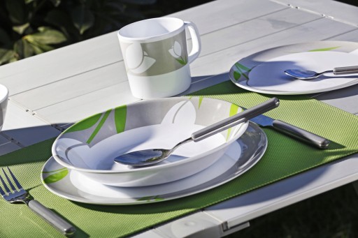 W trakcie wyjazdów turystycznych, kempingowych czy biesiadowaniu na działkach nasz stół może wyglądać jak w najlepszej restauracji, gdyż zestawy obiadowe, szklanki i kieliszki posiadają wygląd najwyższej jakości porcelany.