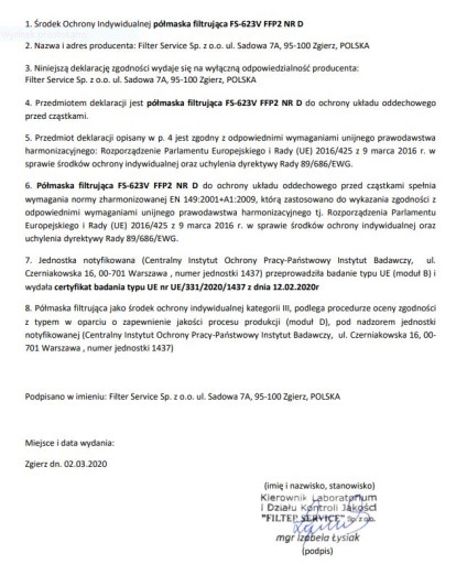 Certyfikat: wydany przez CIOP PIB zgodny z UE 2016/425