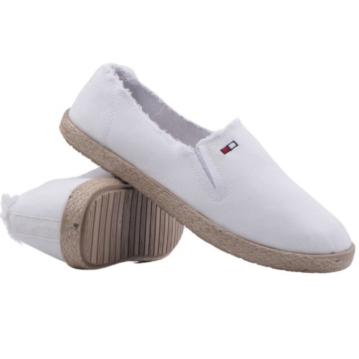 BIAŁE ESPARDYLE MĘSKIE WSUWANE TRAMPKI PŁASKIE TENISÓWKI WKŁADKA EKOSKÓRA