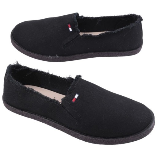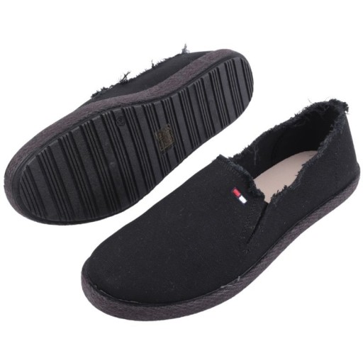 CZARNE ESPARDYLE MĘSKIE WSUWANE TRAMPKI PŁASKIE TENISÓWKI WKŁADKA EKOSKÓRA