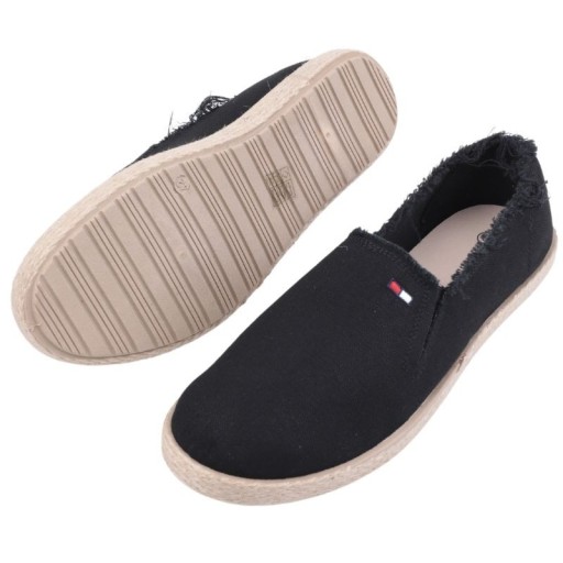CZARNE ESPARDYLE MĘSKIE WSUWANE TRAMPKI PŁASKIE TENISÓWKI WKŁADKA EKOSKÓRA