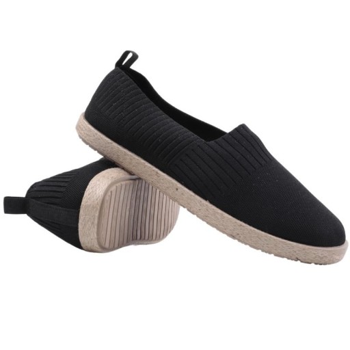 CZARNE ESPARDYLE MĘSKIE WSUWANE TRAMPKI PŁASKIE TENISÓWKI WKŁADKA EKOSKÓRA