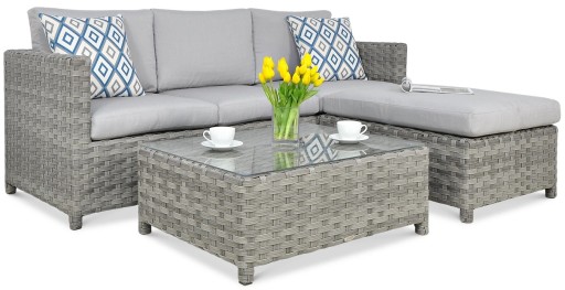 - do wykończenia użyto plecionki technorattanowej w odcieniach szarości. Jest ona odporna na działanie szkodliwych czynników atmosferycznych i nie traci koloru pod wpływem promieniowania UV