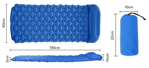✅ MATERAC TURYSTYCZNY DMUCHANY JEDNOOSOBOWY Z PODUSZKĄ DO SPANIA 190 × 60 cm + POKROWIEC