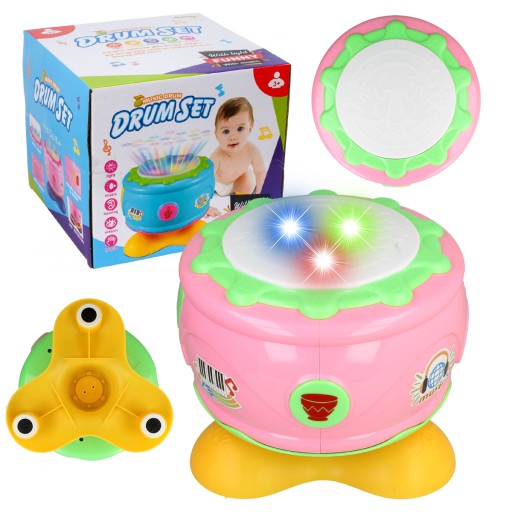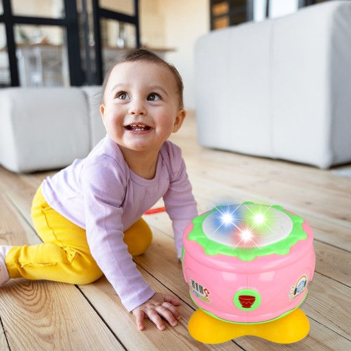 ➡️ Interaktywny bębenek zostanie najlepszą muzyczną zabawką Twojego maluszka. Bębenek gra wiele wesołych melodii, a na jego membranie migoczą trzy światełka w kolorze czerwonym, niebieskim i zielony.